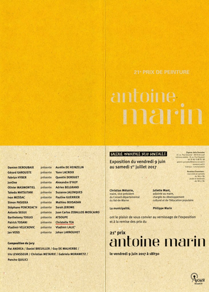 Sélectionnée pour le 21e Prix Antoine Marin 2017, Galerie municipale Julio Gonzalez, Arcueil.