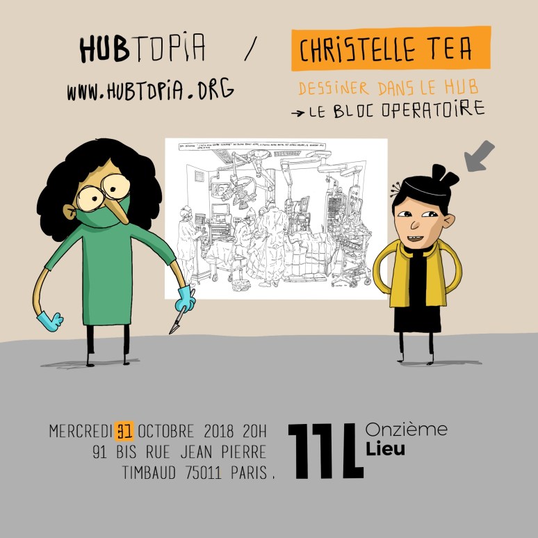 Table ronde Sépànd Danesh invite Christelle Téa, Dessiner dans le Hub, le bloc opératoire, avec Hossein Khonsari, chirurgien à l’Hôpital Necker-Enfants malades et Philippe Comar, auteur et professeur aux Beaux-Arts de Paris, le 31 octobre à 20h au 11L Onzième Lieu (91, bis rue Jean-Pierre Timbaud, 75011 Paris)