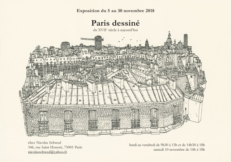 Exposition collective Paris dessiné du XVIIe siècle à aujourd’hui, 5 au 30 novembre 2018. Chez Nicolas Schwed (346, rue Saint-Honoré, 75001 Paris).