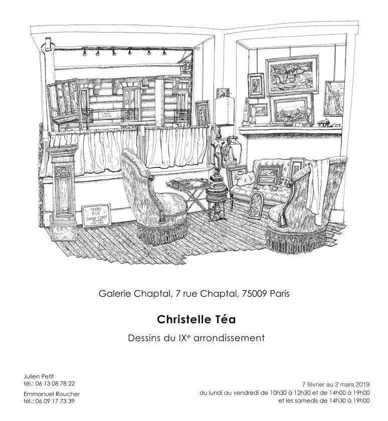 Exposition personnelle Christelle Téa, Dessins du IXe arrondissement, à la Galerie Chaptal (7, rue Chaptal, 75009 Paris), du 7 février au 2 mars.