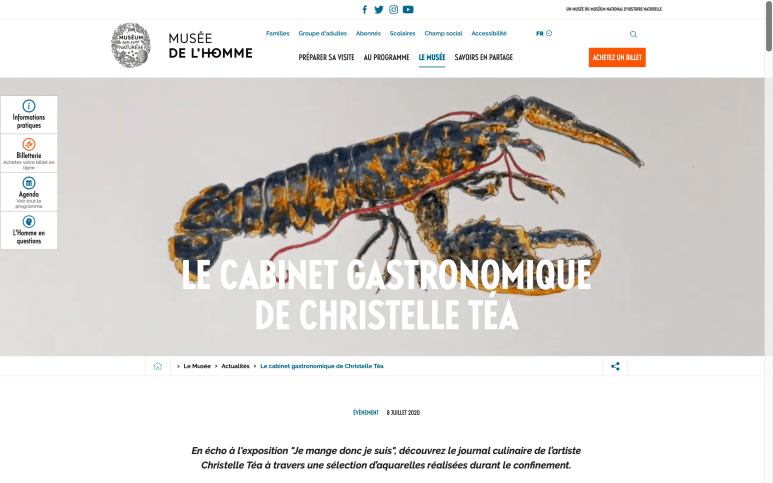 Cabinet gastronomique de Christelle Téa, sur le site internet du Musée de l’Homme